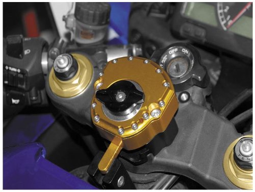 #Top triple tree mounted rotary style damperCNC from billet, anodized black, red, blue, gold, gunmetal and green20 damping settings to minimize head-shakeReplaceable color dial for additional custom lookComes complete with model specific mounting hardwareDial comes standard in anodized blackAll items are sold individually unless specifically described otherwise in the product descriptionThis item fits the following models: 2004-2006 Yamaha YZF-R12006 Yamaha YZF-R1 LE