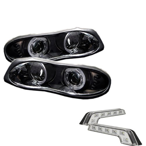 Carpart4u Chevy Camaro Halo LED Black Projector Headlights and LED Day Time Running Light Package